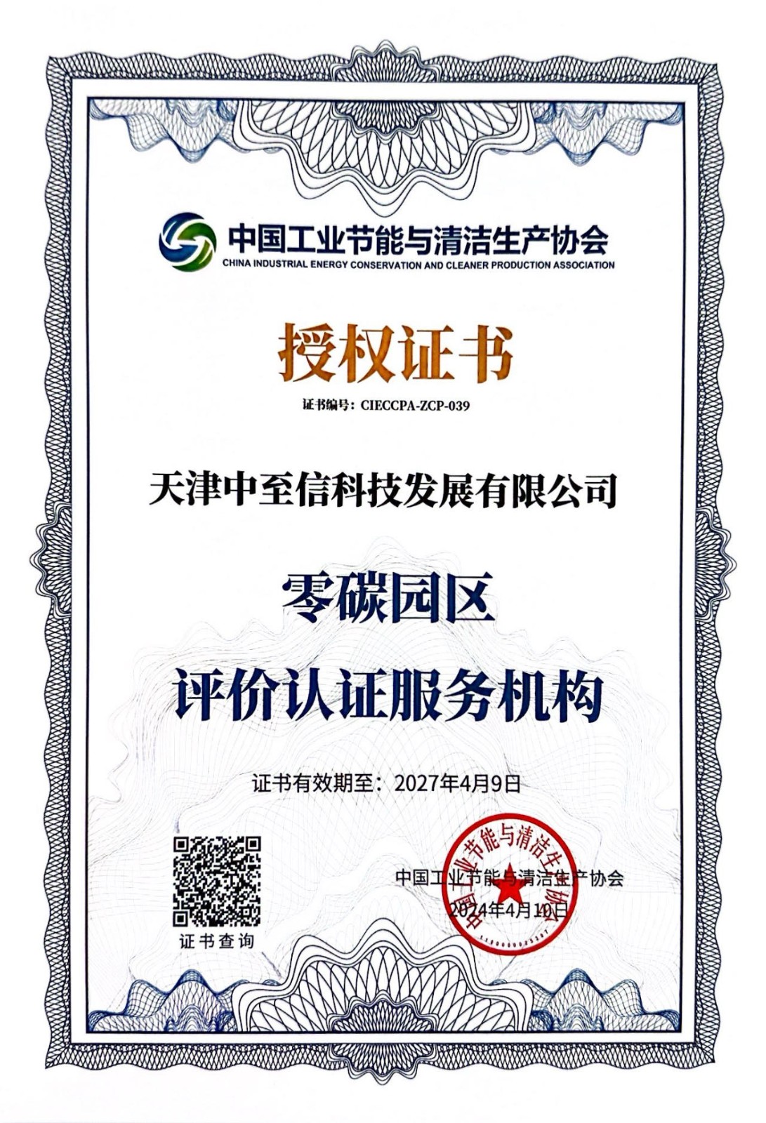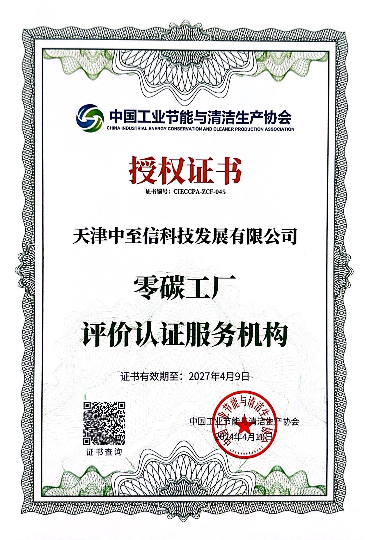 5月13日,天津中至信科技发展有限公司荣获中国工业节能与清洁生产协会(以下简称“协会”)颁发的“零碳工厂”和“零碳园区”评价资质,正式成为协会认可的绿色低碳发展领域首批权威评价机构。未来可依据《零碳工厂创建与评价通则》《零碳园区评价通则》两项团体标准开展相关评价认证服务工作。